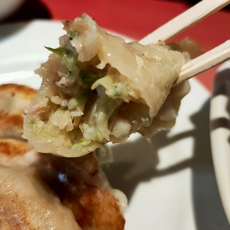 餡は野菜中心のオーソドックスな構成で具材がみっしりというよりは空洞がある。