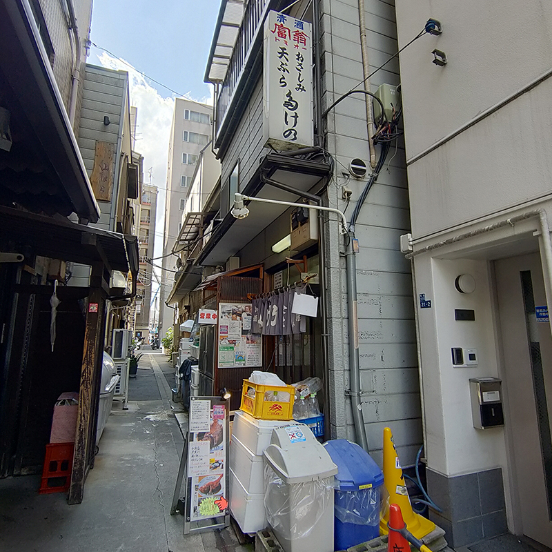 晴海通りから細い路地を入ってすぐの場所にある。