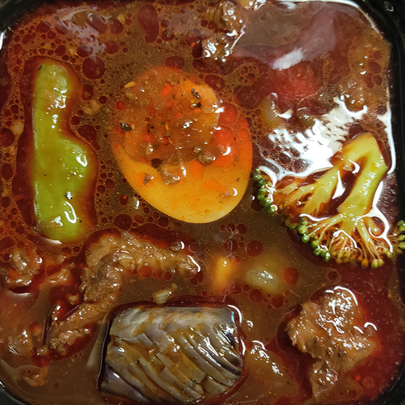 玉子、ピーマン、ブロッコリー、人参、じゃがいも、なすなど牛肉以外の具材もたっぷりと入っている。