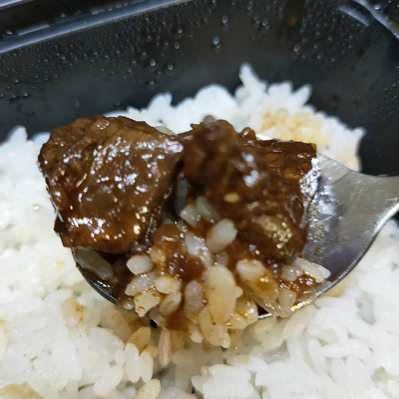 スープカレーではあるがしっかりとコクのある。デリーのコルマカレーを彷彿とさせるちょっと薬っぽいスパイスの香りが個人的には好きなタイプ。肉にはしっかりと味が染み込んでいる。なお、ビーフは200gに増量することもできるようだ。