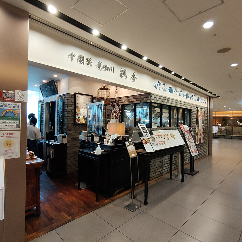 レストラン街にある四川料理のお店。落ち着いた雰囲気で窓際の席は見晴らしがいい。
