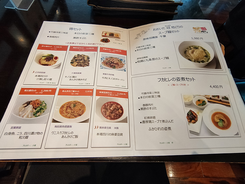四川料理のお店なのでやはりその系統から。後は麺類かご飯ものということになる。