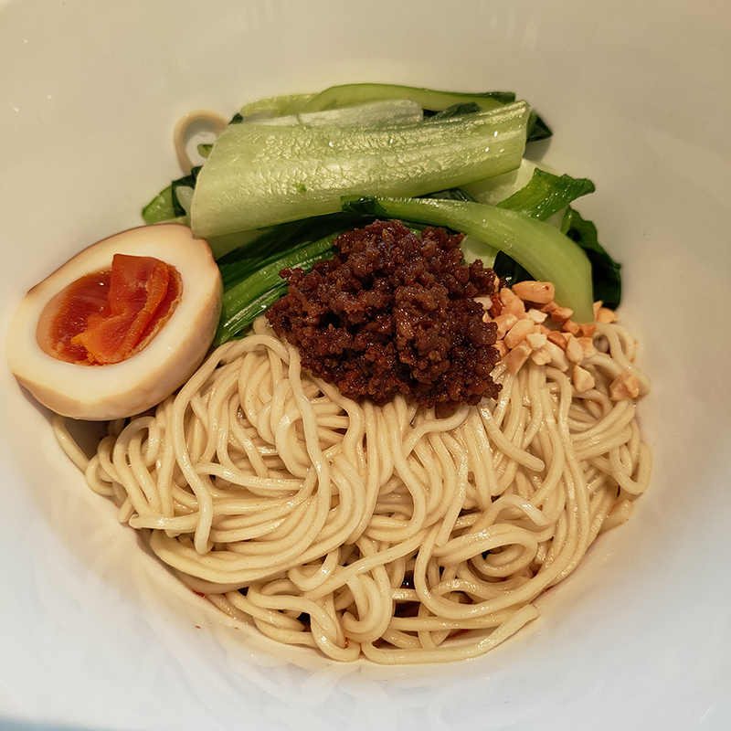 見た目はいたってシンプル。タレは麺の下にあるのでよくかき混ぜてから頂く。