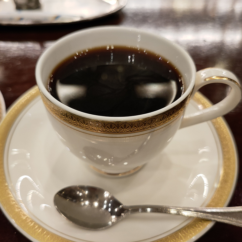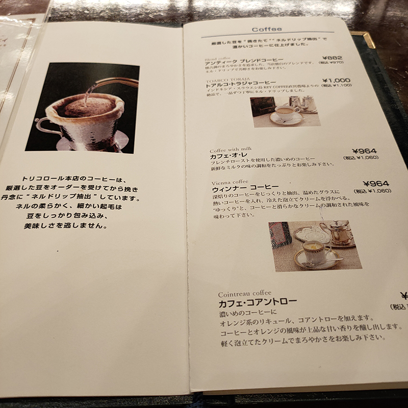 コーヒーは一杯ほぼ1,000円近い銀座価格。ケーキのメニューを見るとサバランに目が惹かれた。