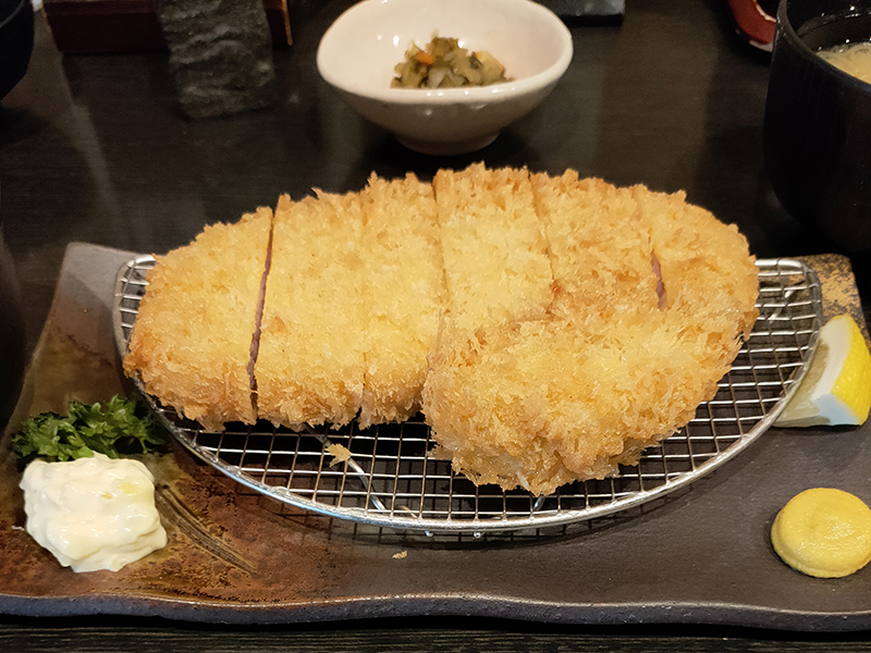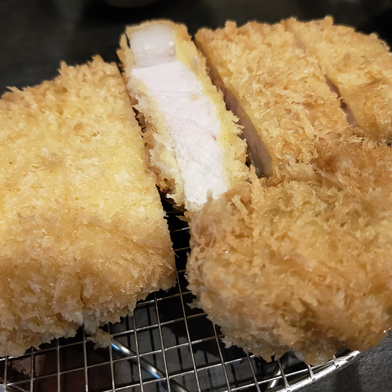 肉はうっすらとピンク色。ジューシーで脂身も甘い。何より衣が秀逸でふんわりと柔らかい口当たりと軽快なサクサク感が心地良い。