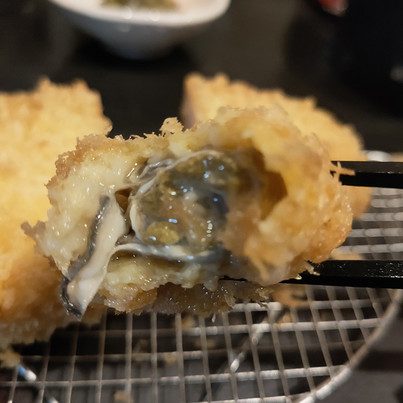 衣の印象はロースかつと同様で、牡蠣そのものもレアな火加減でジューシーで旨い。