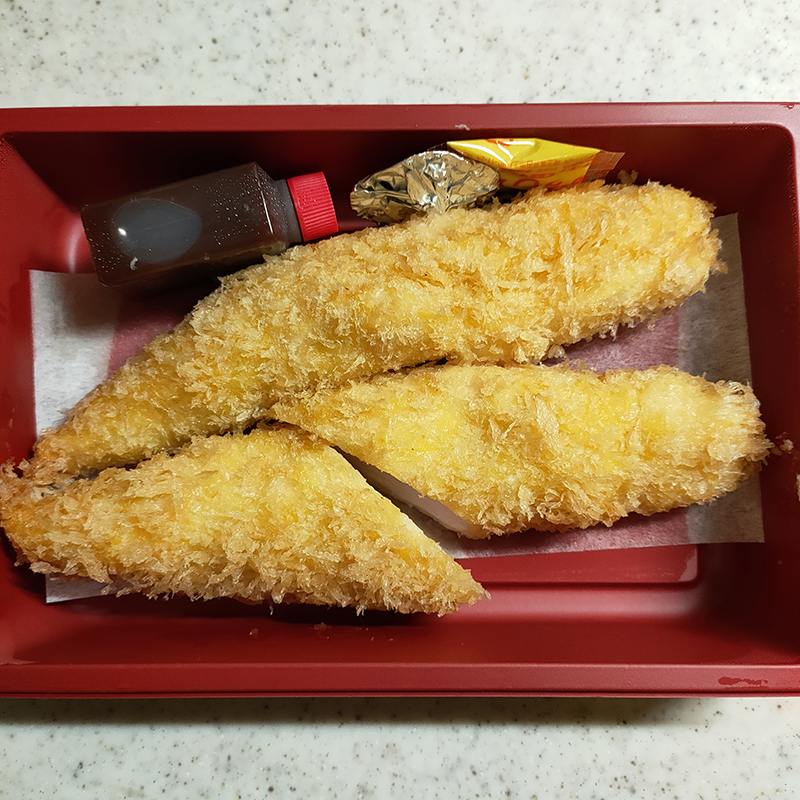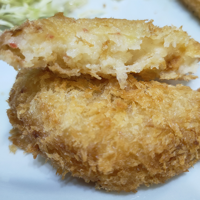 こちらはささみかつとカニクリームコロッケの2品。どちらも衣の軽やかさを十分に満喫でき、揚げ物のテイクアウトとして出来がいい。ただし、カニクリームコロッケは平べったいのはマイナス。俵型であって欲しいし、もうちょっとベシャメルらしいクリーミーさが欲しいところ。