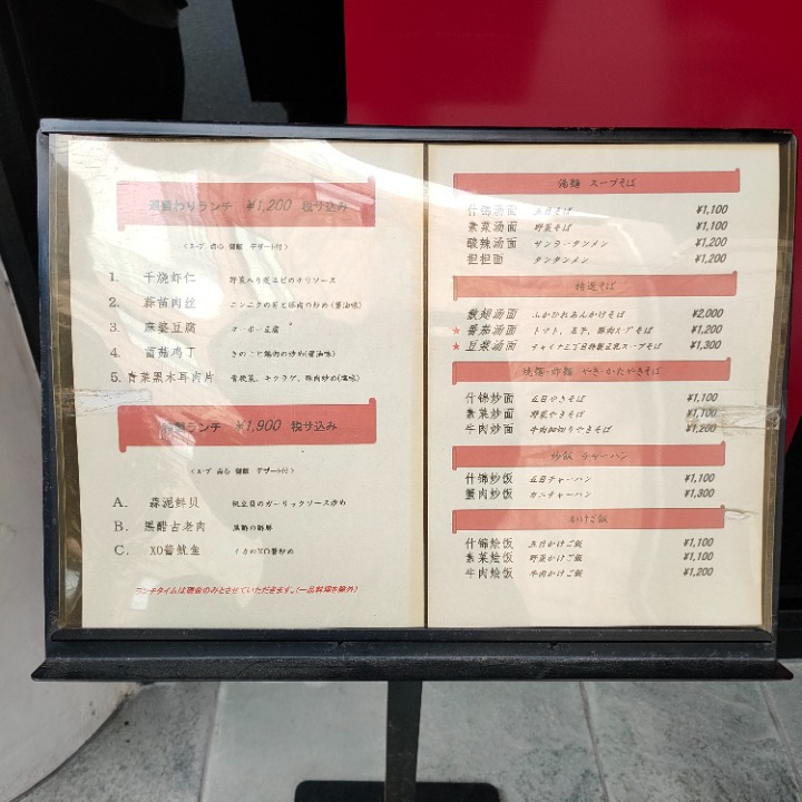 平日のランチは定食が1,200円、麺類は1,100円から頂ける。場所や雰囲気を考えれば十分に