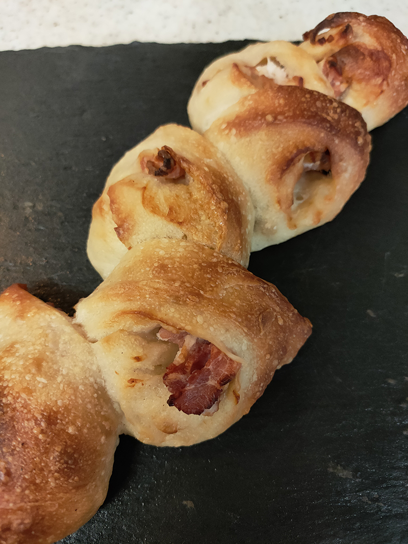 思ったよりも硬くなく、ほどよい柔らかさで食べやすい。柔らかいといっても皮目は香ばしく粉の旨味もしっかりと感じられる。そして何よりベーコンの薫香が素晴らしい。