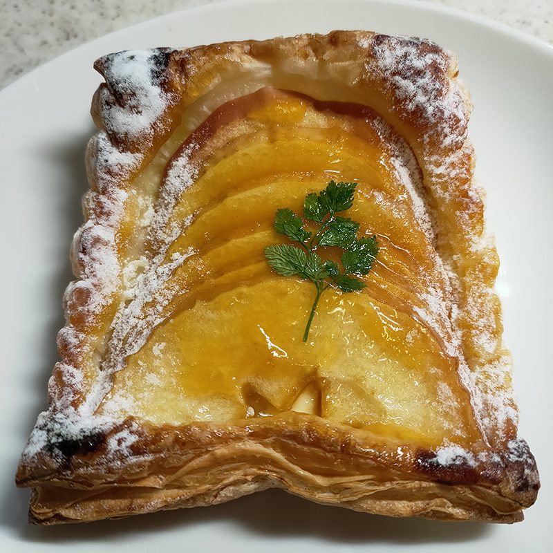 パイはサクサクと歯切れがよく、変に油っぽさがないところに好感が持てる。キャラメリゼしたリンゴとしっかりと味が濃いカスタードが入っていて味のバランスがよくこちらも秀逸。