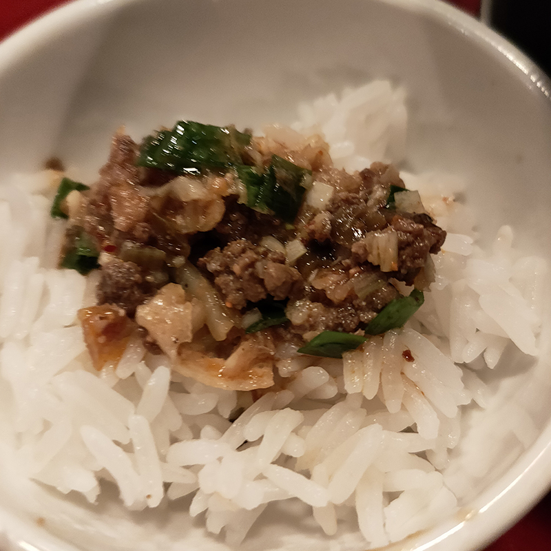何より香り高く癖になる味わい。最後は沈んだ肉味噌を穴あきレンゲでかき集め汁を掛けて。