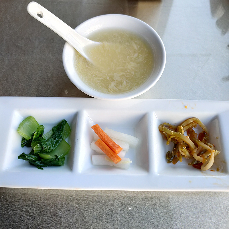 前菜はザーサイの盛り方が少々雑だが、全般的にそつのない味付け。スープもすっきりと上品なタイプ。