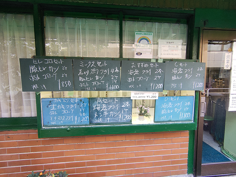 入口の黒板メニューを見るとすべて揚げ物。単品もしくはいくつかのメニューを組み合わせたセットのみ。