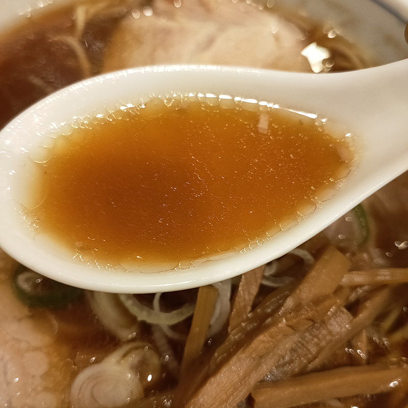 スープは濃すぎず、薄すぎないほどよいバランス。とんこつに魚介系がほどよく下支えしていて旨い。