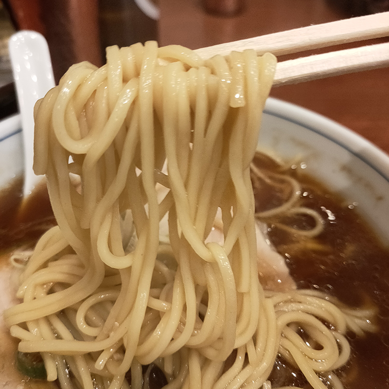 三代目の手による自家製麺ももっちり感があってスープとの相性がいい。