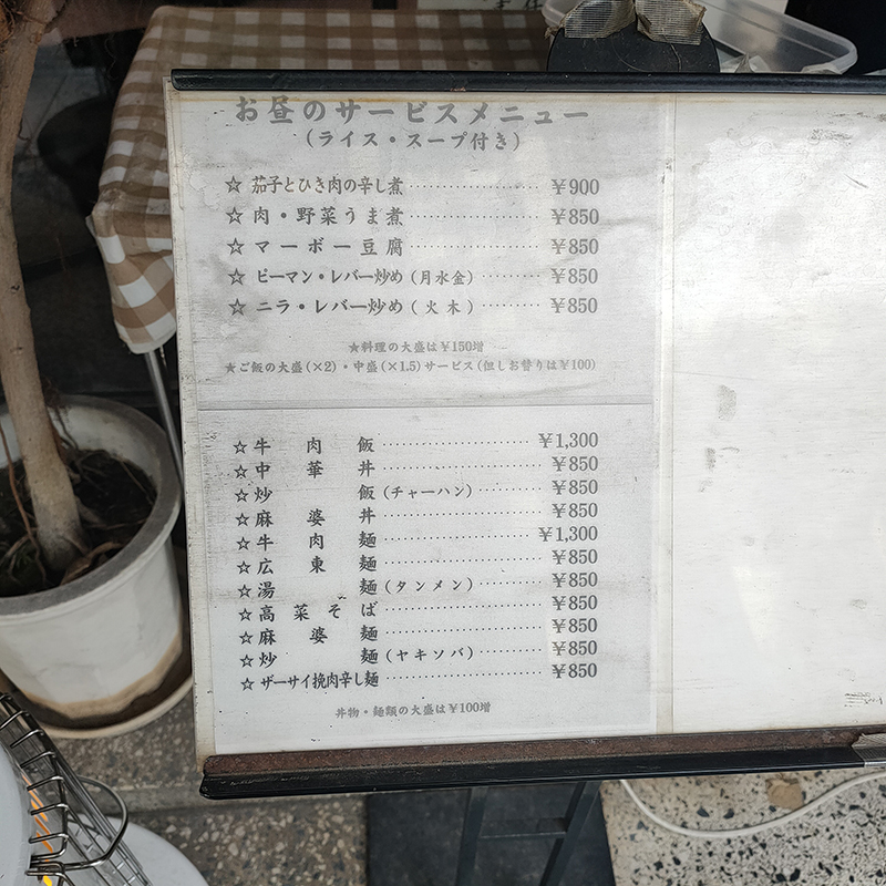 既に本店訪問時にレバニラ炒めと決めていたので、こちらも同様と考えてメニューを確認したところ、曜日によって異なることがわかり断念。