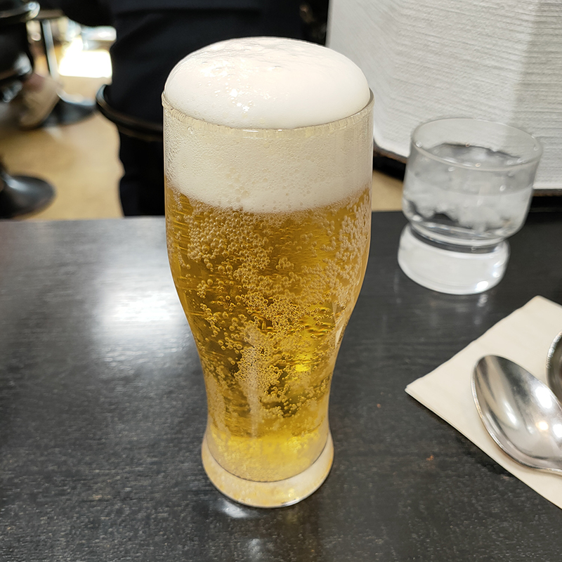 まずはビールから。続いて、ラサム。思ったよりもたっぷりとあり、しっかりと辛い。