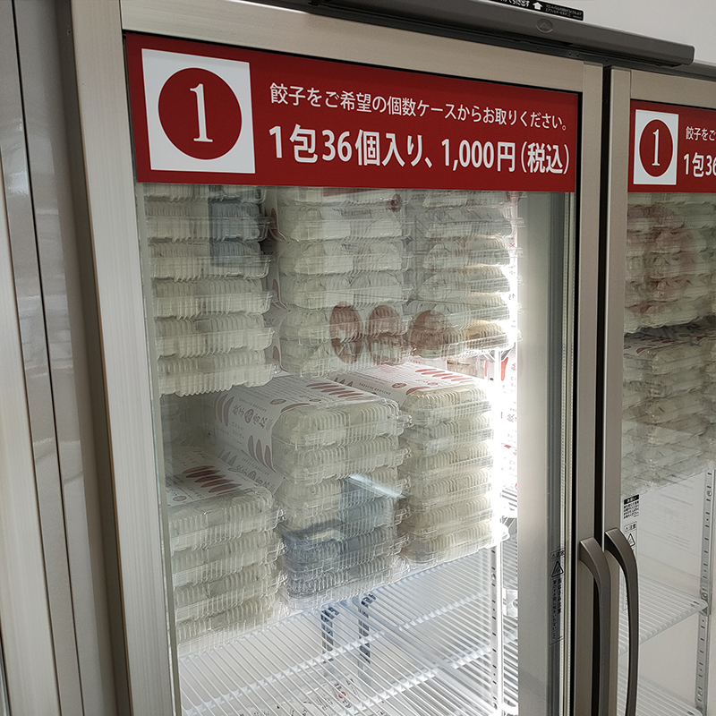水沢発のお店らしいが、他ではお目に掛かったことがなかったので入ってみることに。暖簾の通り完全に無人。設置された冷凍庫には餃子が入っている。どうやら種類の選択肢はなく36個で1,000円というお値段。