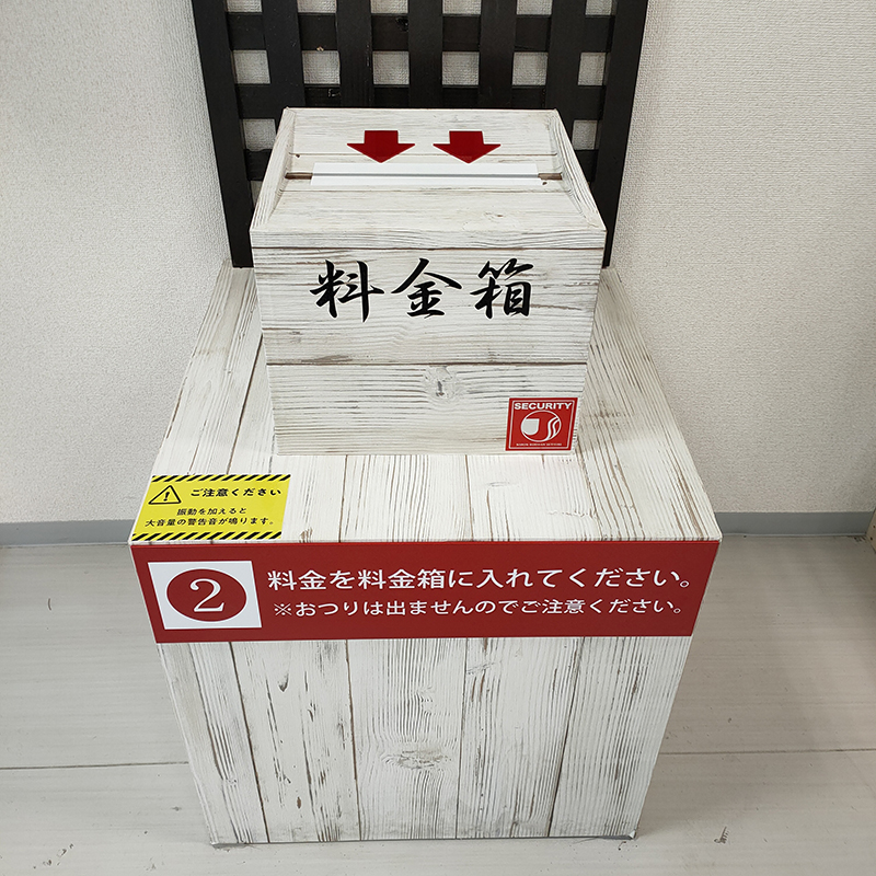 支払いはというと今どきの電子決済ではなく、賽銭箱が置かれているだけ。その賽銭箱も簡易な造りで、こちらが心配になる。日本だから成り立つビジネスモデルと言える。