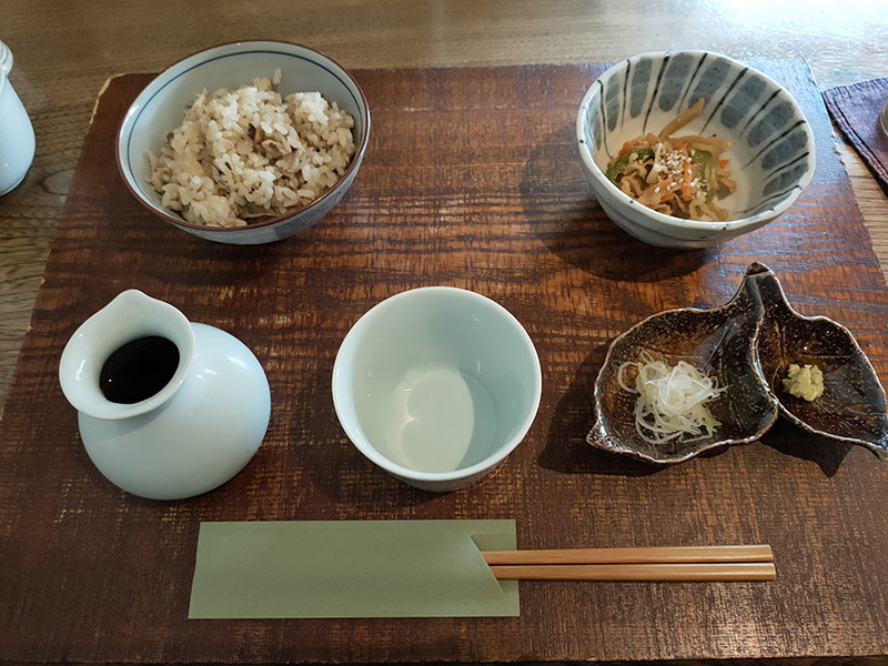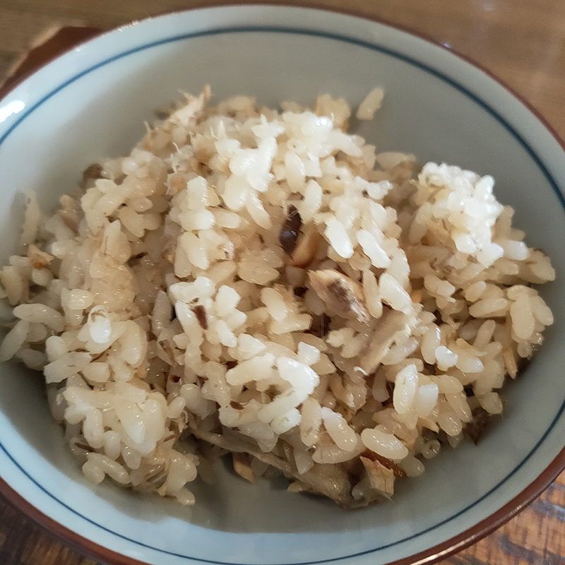 焼きぶりと牛蒡の炊き込みご飯は手作り感が満載で、お酒のアテにもなるタイプ。
