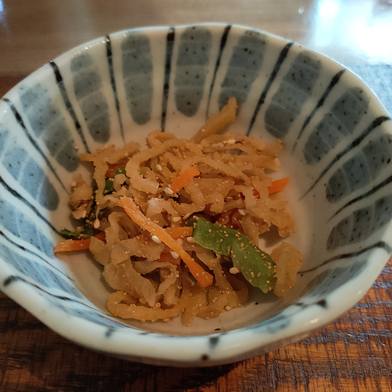 小鉢は切り干し大根の胡麻和えで丁寧な仕事ぶりが感じられる味付け。