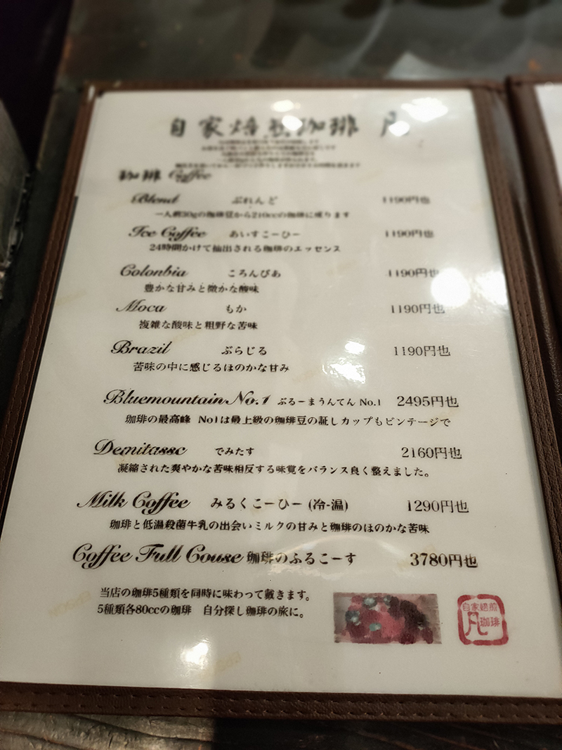 メニューを見ると以前と変わらず高い価格設定。入口に設置されたケーキ用の冷蔵庫にあった巨大なショートケーキは何と1,600円。これは流石に断念してコーヒーのみ頂いた。