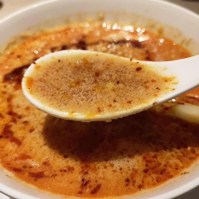 極端に旨味が強いわけではなく、どちらかと言えばストイックなタイプ。白胡麻の程よい円やかさにしっかり辣が効いているので、寒い日にも関わらず、汗が噴き出ること。
