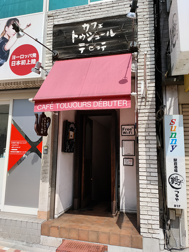 入口に「ネルドリップコーヒーのお店」の看板が掲げられていて期待が膨らむ。店内は薄暗く、隠れ家的な趣きがある。