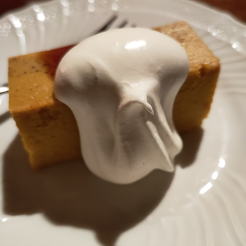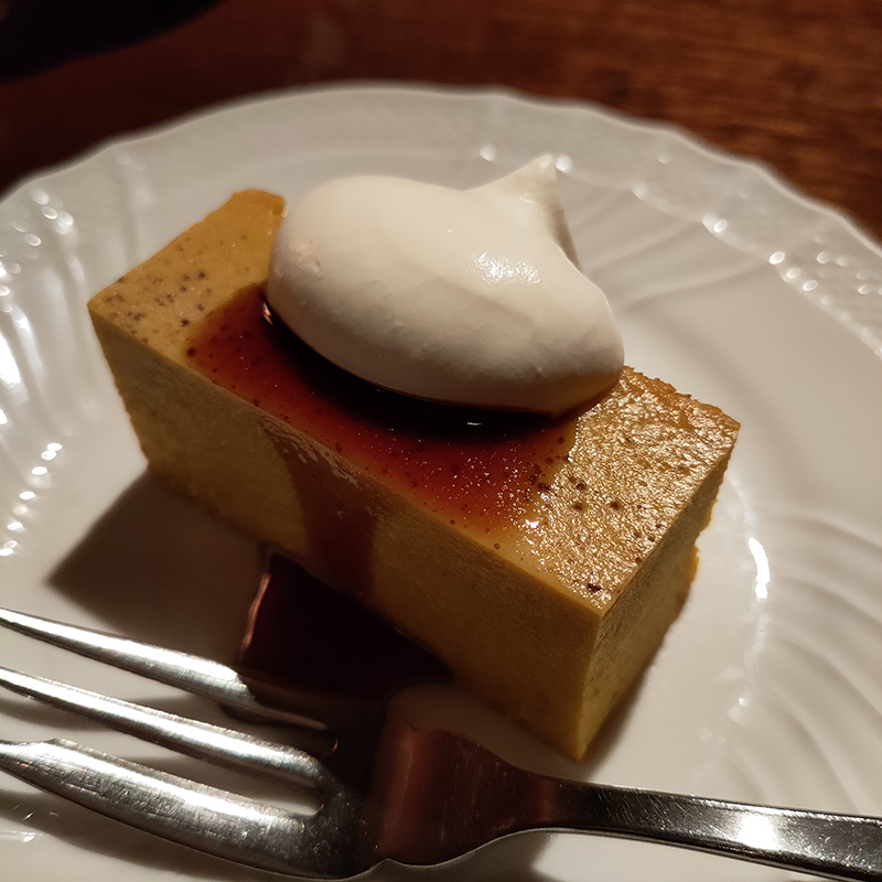 プリンのイメージとは違い、ムースやババロアの様な雰囲気。とても滑らかでかぼちゃ然としていないところも好感が持てる。そして、生クリームが更にまろやか。