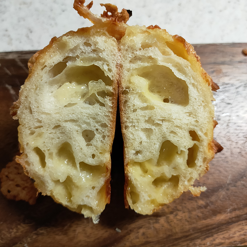 低温発酵させたバケット生地を使用しているとのこと。表面はカリッと、中にはたっぷりのゴーダチーズが入っているので、これだけでワインのお供になる。