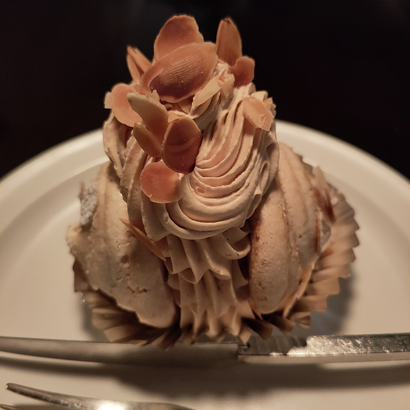 キャラメルクリームをメレンゲでサンドイッチしたケーキ。メレンゲが崩れやすいのが少々難点だが、キャラメルのほろ苦さがコーヒーによくマッチしていた。