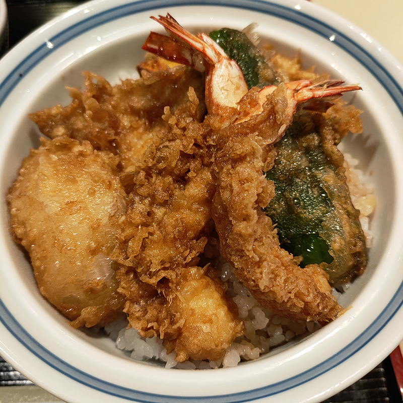 天つゆが掛けられると揚げ上がりの印象とは裏腹にサクサク感はほとんど損なわれてしまう。ランチの天丼としては魚介の質は標準的。天つゆは案外悪くない。
