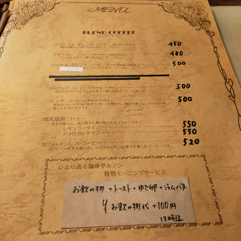 決して、座り心地がいい椅子ではないのだが、どことなく落ち着く。ついつい長居をしてしまう人が多いのだろう。メニューには滞在時間は90分までと書かれている。
