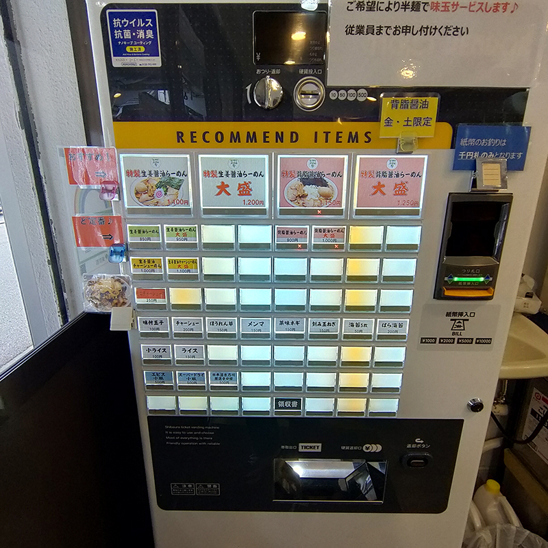 ラーメンは生姜醤油らーめんか背脂醤油らーめんの2種類で、各々にトッピングがチョイスできる。