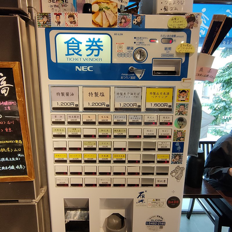 まずは券売機にて食券を購入。塩が人気のようだが、左隅に醤油があることを確認して迷わず醤油を選択。