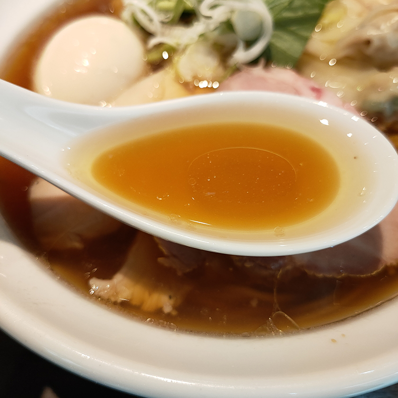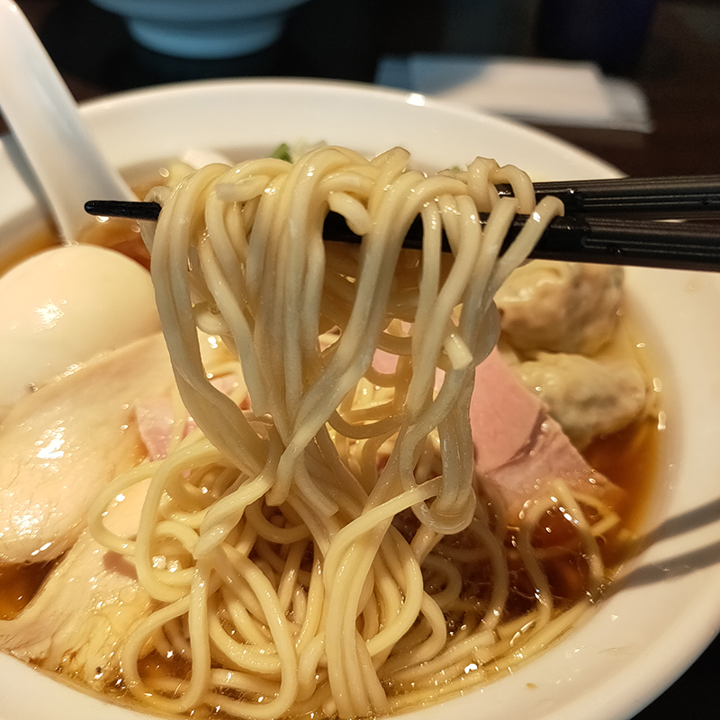 まずはスープをひと口。表面はかなり鶏油が多いのだが、ベタベタした感じはなくとても上品な味わい。鶏油特有の香りは感じられるのだが、嫌味な感じがしないところが凄い。鶏の出汁の旨味がしっかりと感じられるハイレベルなスープで素直に美味しい。
