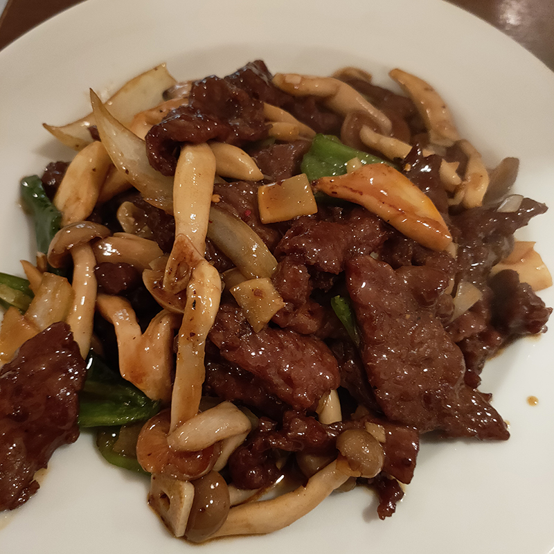 写真からは伝わりにくいかも知れないがかなりのボリューム。これで利益が出るのかと心配になるほどの牛肉の量である。他に具材はしめじ、たまねぎ、ピーマンという構成。辛さもさることながらしっかりと濃厚な味付けなのでごはんのペース配分には苦労する。