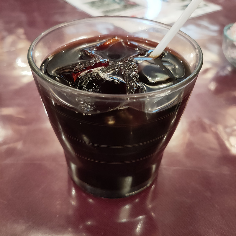 更に食後にはコーヒーか紅茶がついてくる。今回はアイスコーヒーを頂いたのだが、ミラノ豆ブレンドを使ったコーヒーを使用している。