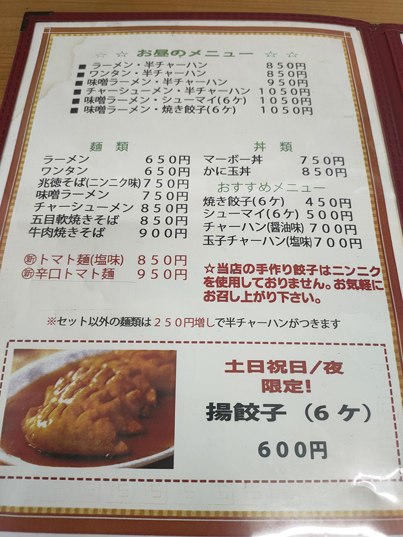 焼き餃子も頂きたいのはやまやまだが、流石に6ケはきつい。しかし、セットメニューを見るとチャーハンに焼き餃子3ケのセットが有るのを見つけこちらをお願いすることに。