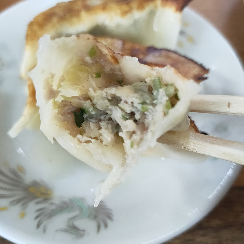 小ぶりではないのでこれなら3個で正解。ジューシーで具材のまとまりがよく、バランスが取れた焼き餃子。