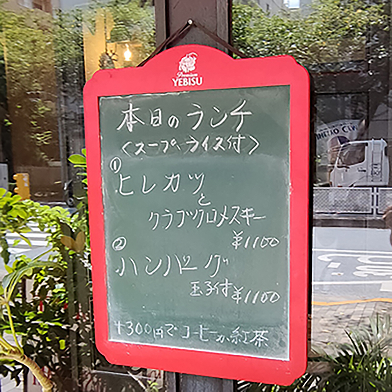看板のコーヒーの文字もあってレストランというよりは喫茶店ライクな風情。お店の前には食品サンプルがあり、長年地元に根付いた歴史を感じさせてくれる。
