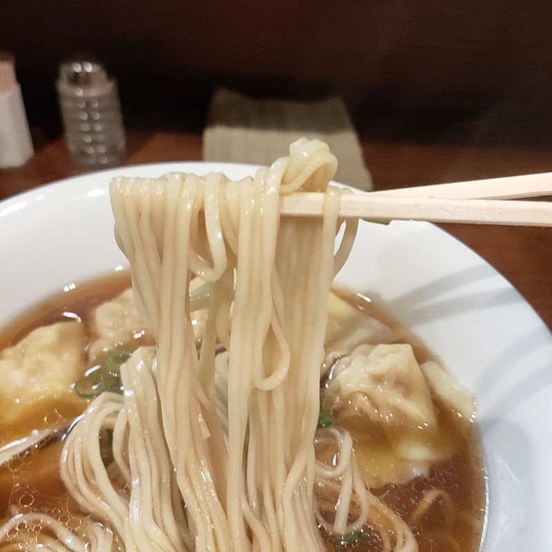 中細のストレート麺は旨味があり、スープともよく絡む。具材もバランスが取れていて、ワンタンも秀逸。麺自体のボリュームが割とある方なので万人におすすめはしないが、ワンタンを合いの手にライスを頂くのも悪くない。