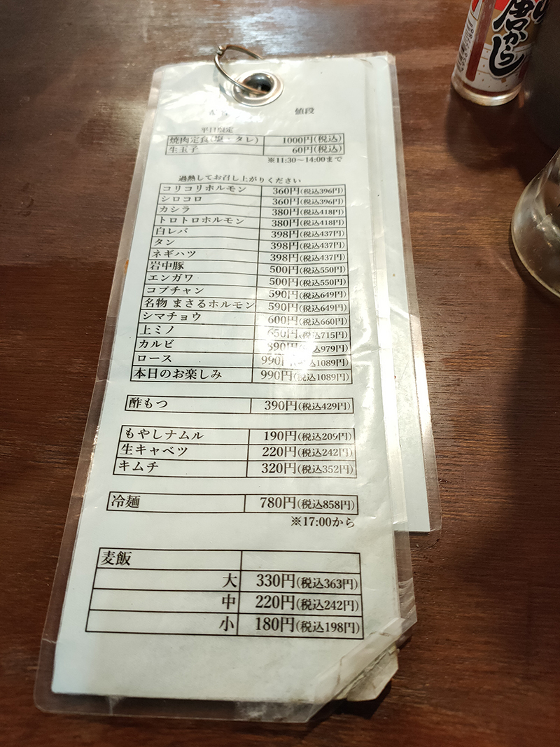 お店に入ったのが13時を少し回るタイミングだったが、ランチの焼肉定食を注文することができた。