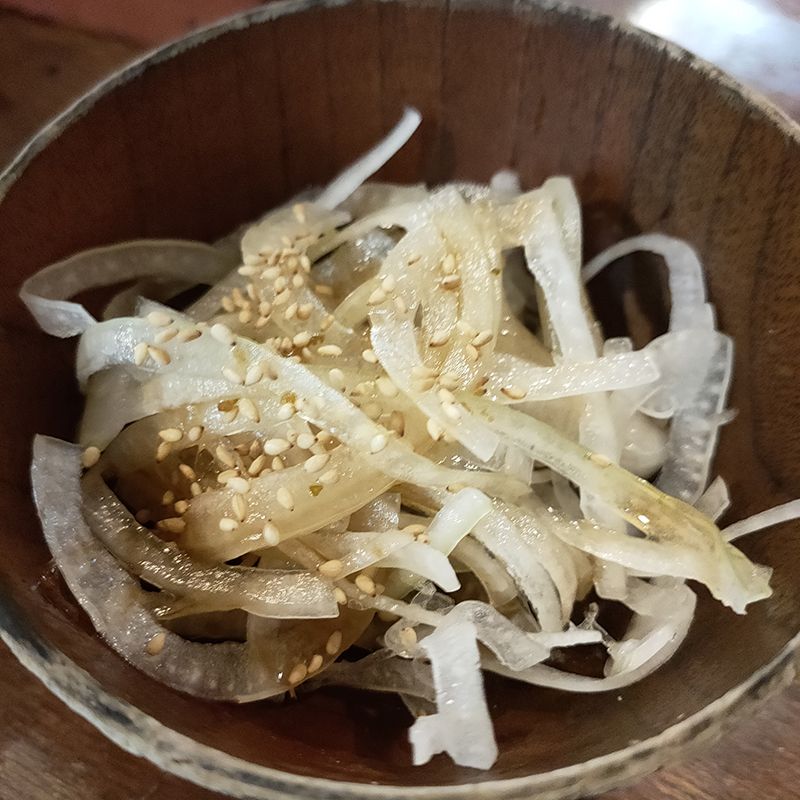 ランチに付いてくるオニオンスライスがお寿司のガリの様にいい合いの手になってくれる。