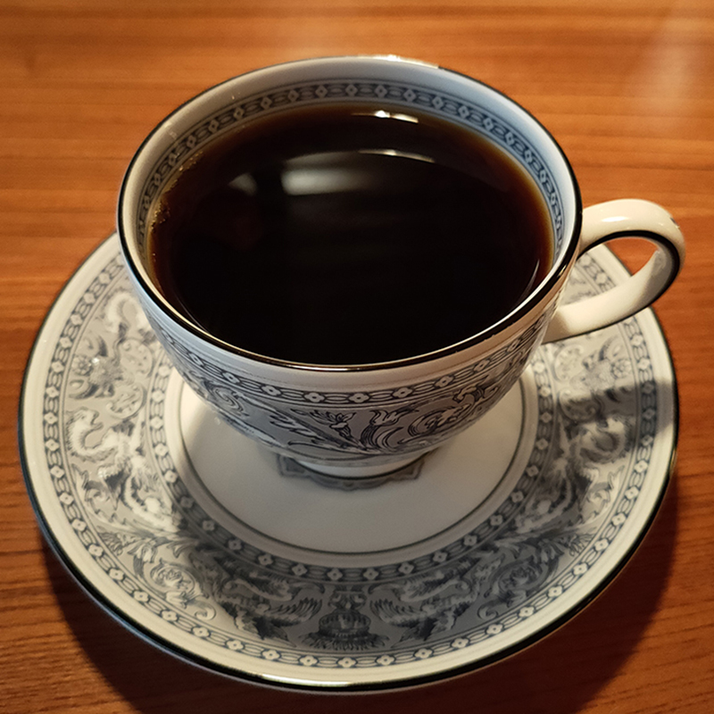 コーヒーは香り高く、苦みの中にもほんのりと甘みが感じられる。酸味も穏やかで全体のバランスがよく上品な味わい。
