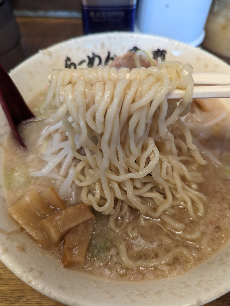 スープはこのタイプのラーメンらしくしっかりと塩気があって、醤油の香りもほどよく感じられる。この手のタイプのラーメンなら中途半端でなく振り切っているところは好感が持てる。