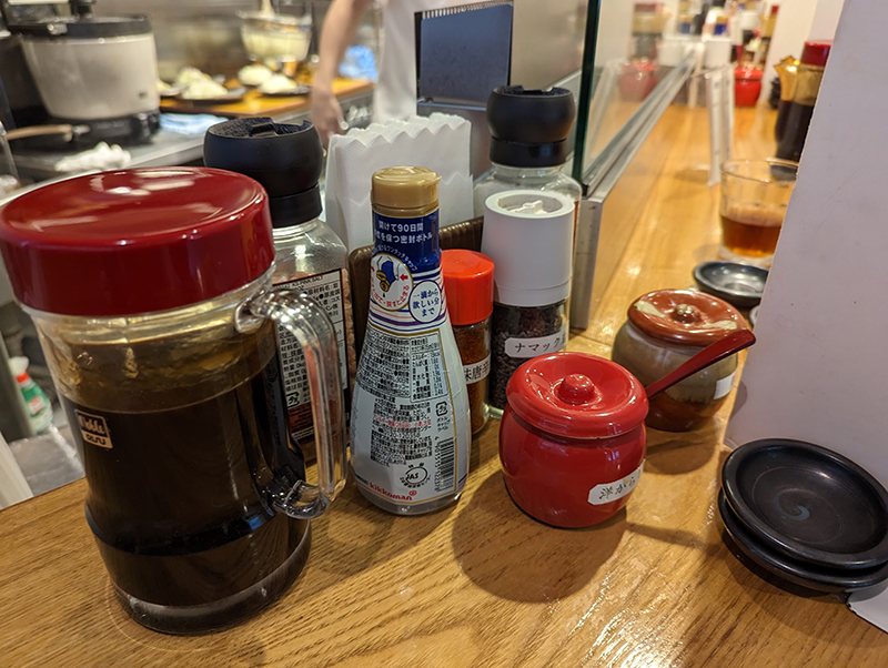 卓上には他の店舗同様にいくつもの調味料が用意されている。結局、終始塩で頂いた。
