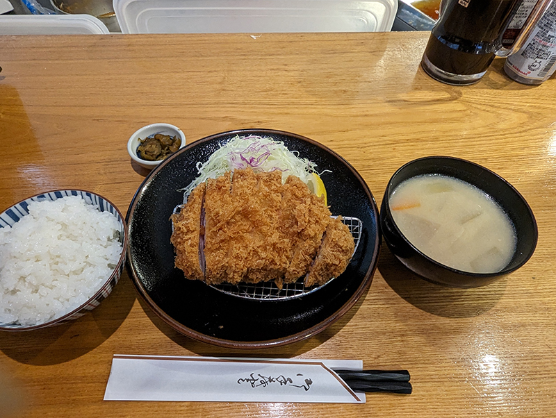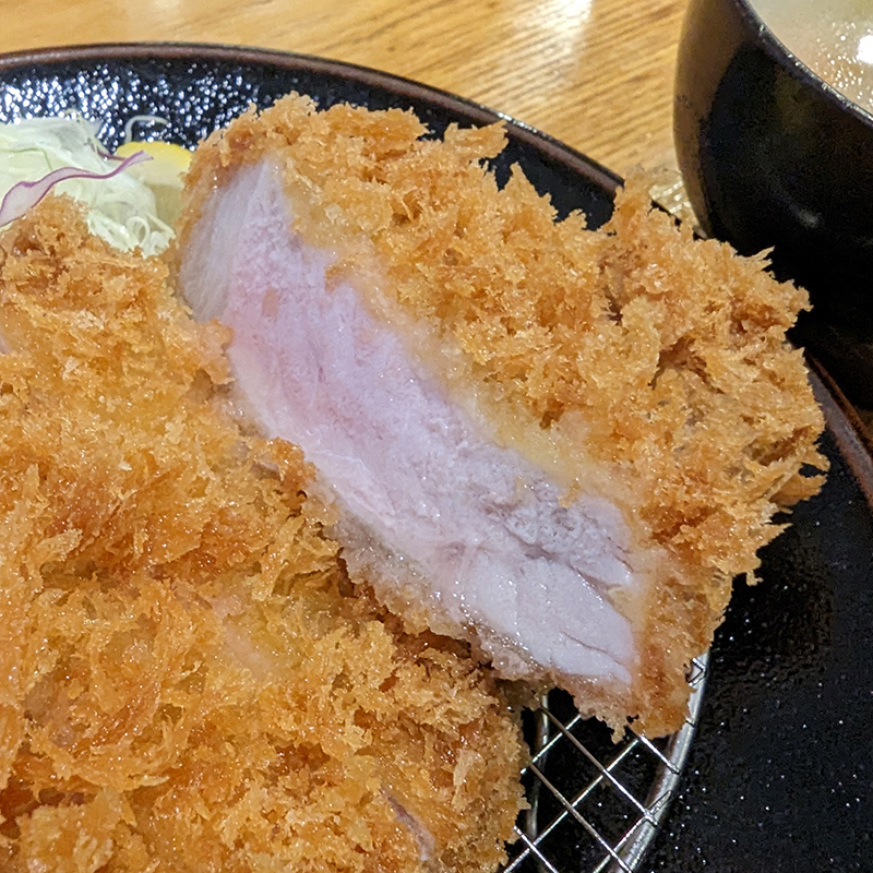 ロースでは一番小さいサイズになるがしっかり厚みがあってボリューム感がある。衣は油が滲んでいて油切れは決して良くないが、火の通りはほどよい加減。