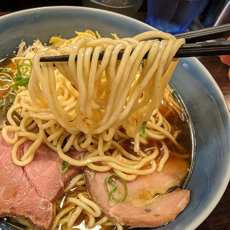 小麦の旨味が感じられる麺でスープとの相性もよく、手揉み麺と比べても甲乙つけがたい。