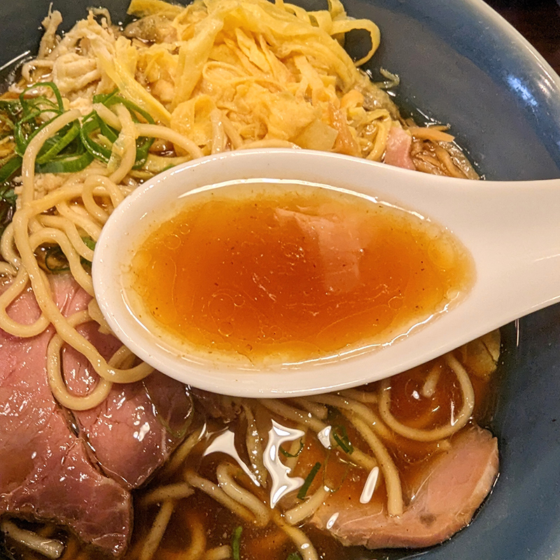 具材の錦糸卵は彩りとしてはいいのだが、少し煩わしく感じてしまう。一方、チャーシューはとても美味しい。